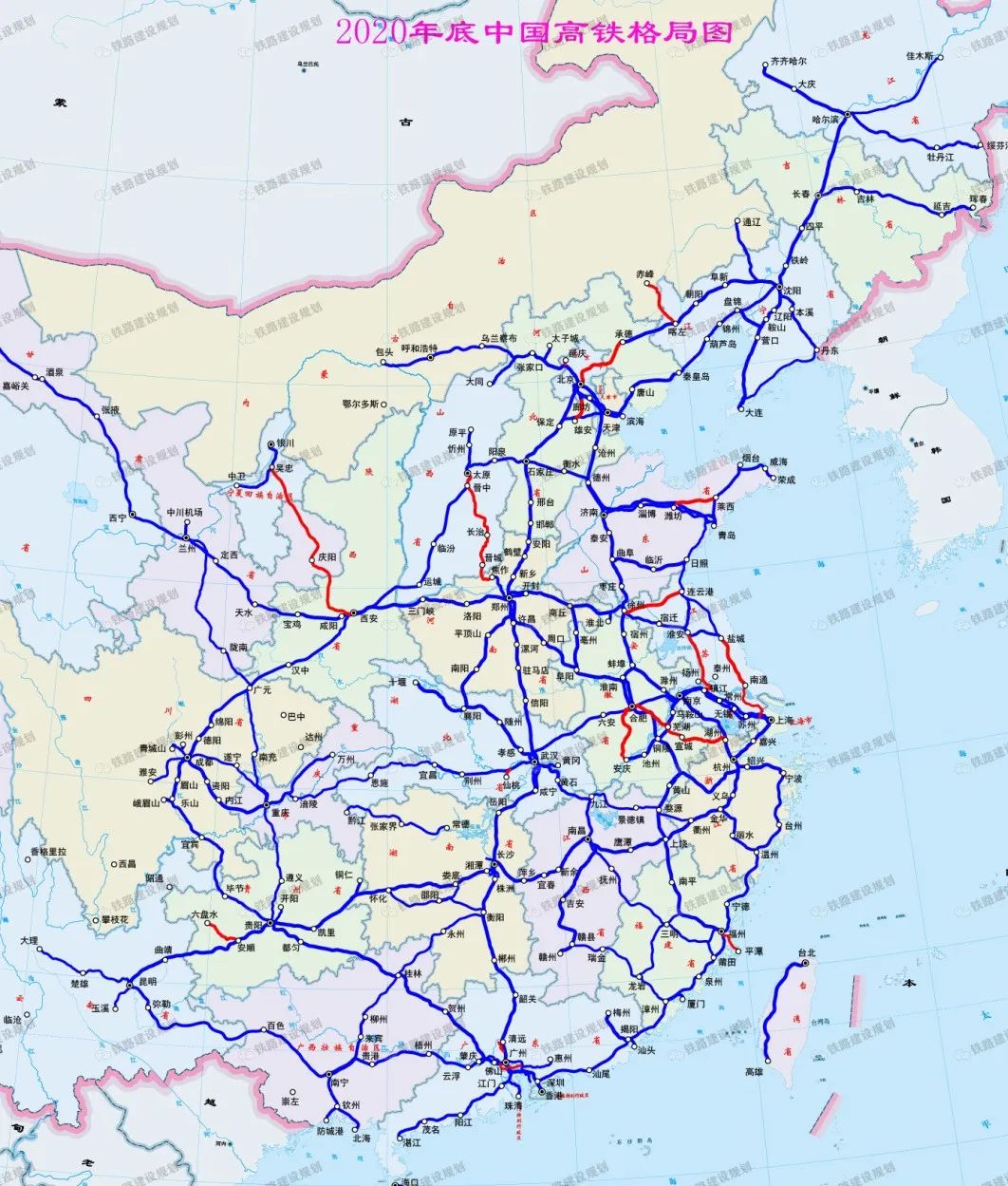 (备注:本图仅含时速200公里及以上项目,红色为年内计划开通高铁,兰新高铁未全部示出,宜万铁路为特例)