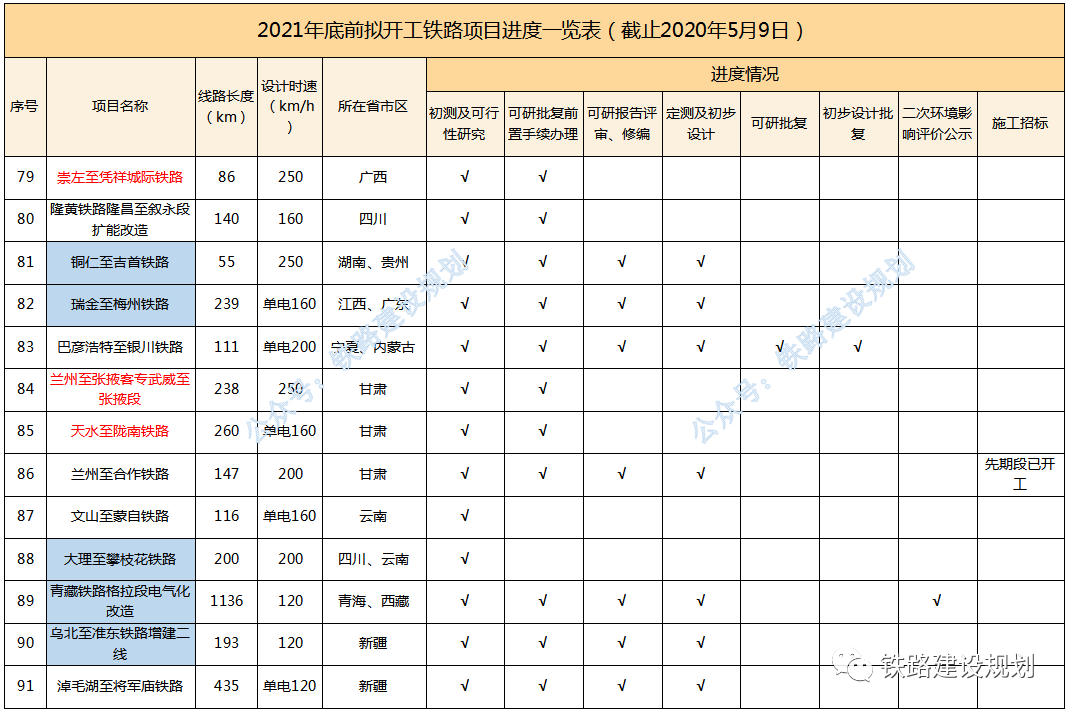 另外普速铁路方面,年底前计划通车的项目主要包括: